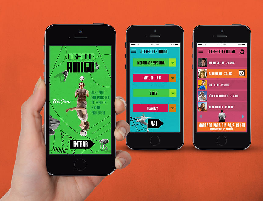 We also designed an app where RioSport users could look for other people for sport activities at anytime, and in real-time. It could be someone to run or bike with, a tennis partner or a missing soccer player to fill out a team. Each user simply sets the sport activity they want to do at that moment. The app finds people close to each other that are looking to play the same sport using geo-location.